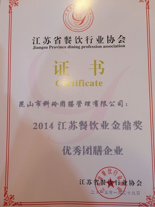 昆山市科玲团膳管理有限公司荣获2014江苏餐饮业金鼎奖